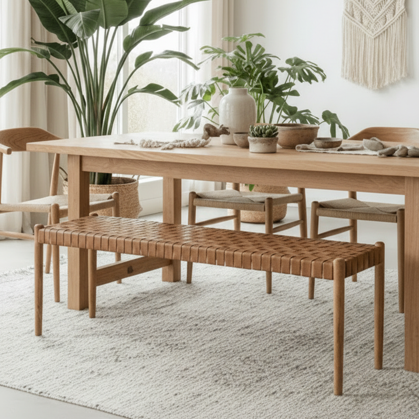 "Jag älskar kombinationen av teak å läder, det ger en lyxig men naturlig känsla. Perfekt både som extra sittplats å som en snygg detalj. En ny favorit här hemma." – Emma K.