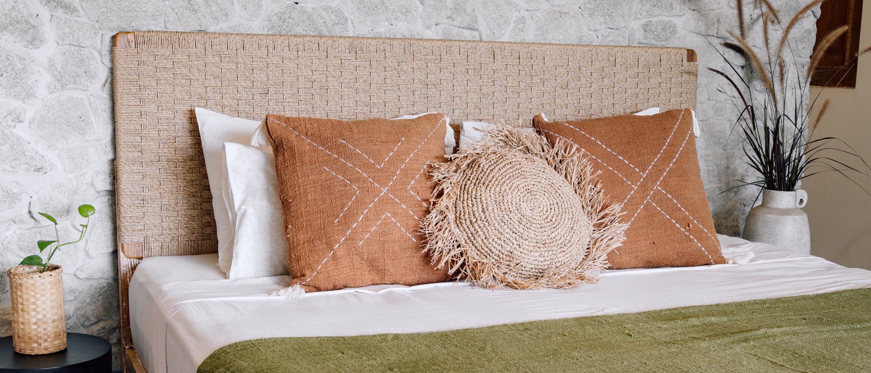 Förhöj ditt sovrums utseende med vår sänggavel i teak och vävt läder, noggrant konstruerad med en robust ram i teak och eleganta läderremmar i kamelfärg. Denna sänggavel kombinerar modern design med skickligt konstnärskap. Välj mellan 160 cm & 180 cm.